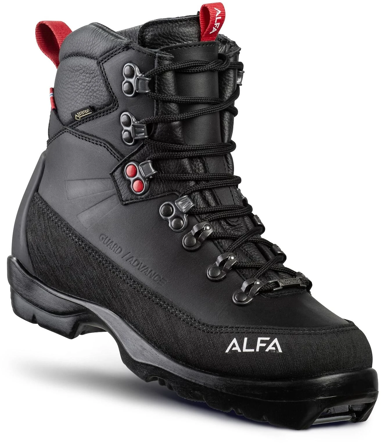 Guard Advance GTX er en videreutvikling av Alfas klassiker Skarvet/BC Advance GTX. Det er en varm og kraftig BC skistøvel i fullnarvet lær, med god støtte og komfort for krevende skiturer på fjell og vidde. Denne videreutviklingen av den klassiske fjellskiskoen Skarvet/BC Advance GTX er en forsterket modell som passer ypperlig til turer i enda mer kupert terreng med brattere nedkjøringer. Støvelen er vinterfôret med GORE-TEX, har en stabil og varmeisolerende binnsåle, samt anatomisk innleggssåle. Med Memoryfoam for komfort og ekstra god passform i hælen for å hindre gnagsår, kan du nyte selv de tøffere turene og nedkjøringene. Helkalosjeringen sørger for ekstra beskyttelse og levetid. Guard Advance GTX W er en spesialmodell til dameføtter.